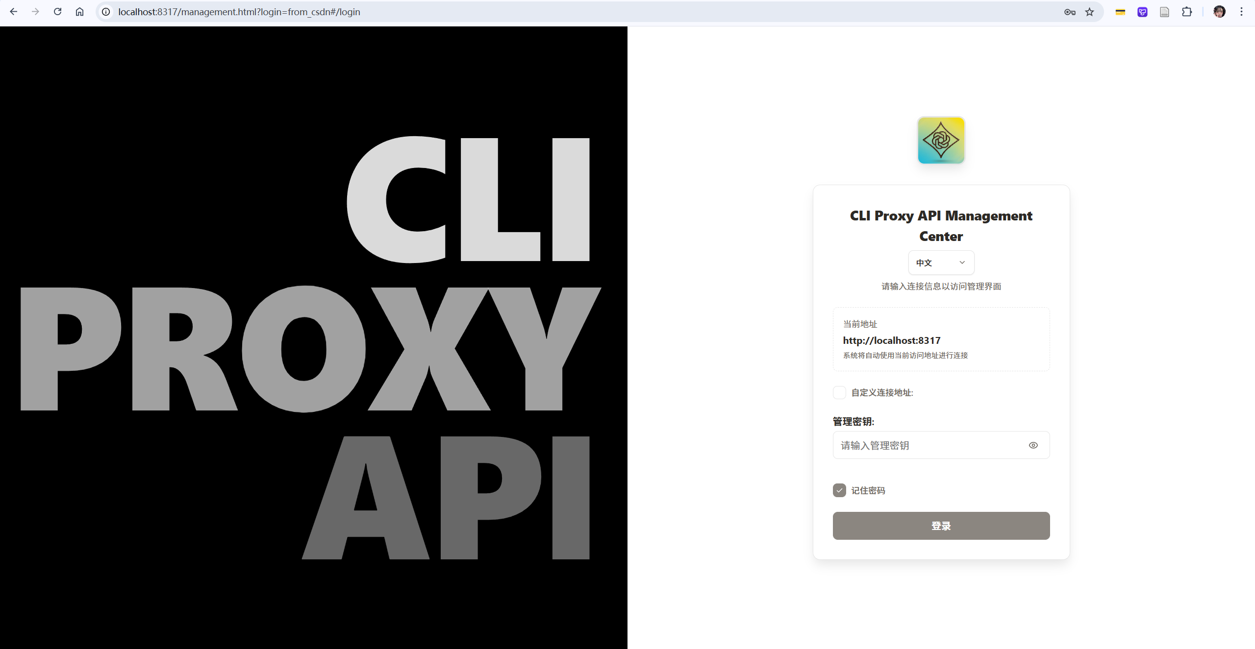 http://localhost:8317/v1 - API Key: 在管理面板的 API 密钥列表里复制,或者自己创建一个