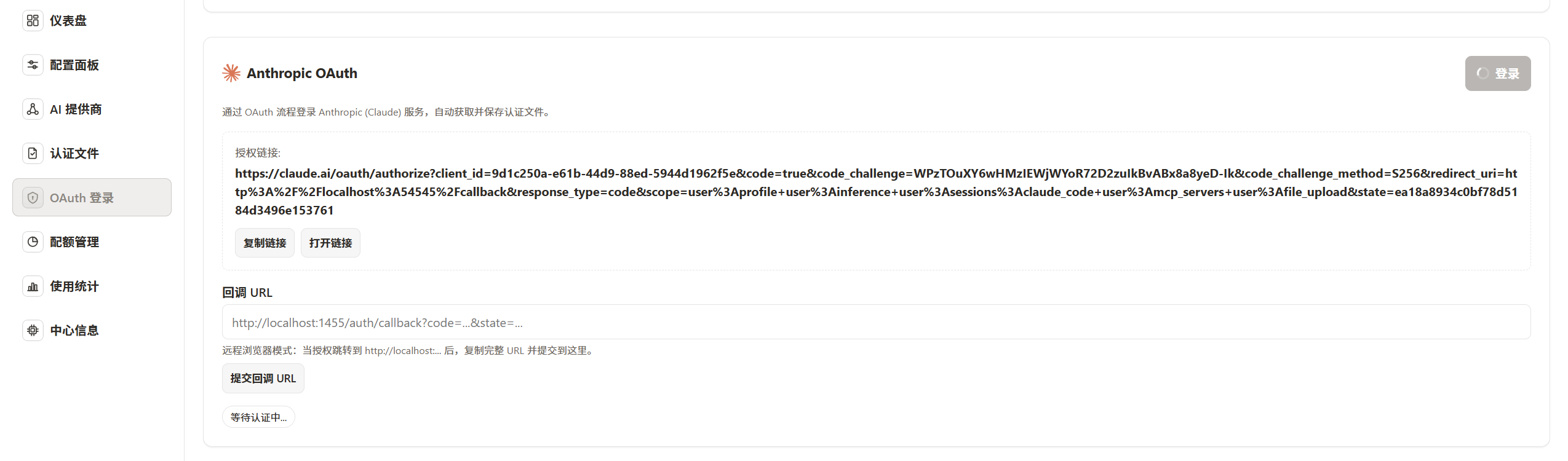 然后选择你要授权的 AI 服务,点击登录获取验证链接,按提示完成授权。