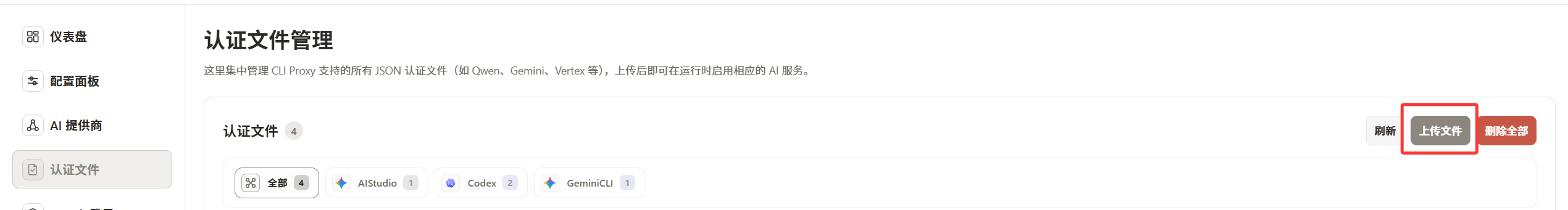 支持的通常是 JSON 认证文件,导入后即可在对应 provider 中启用。