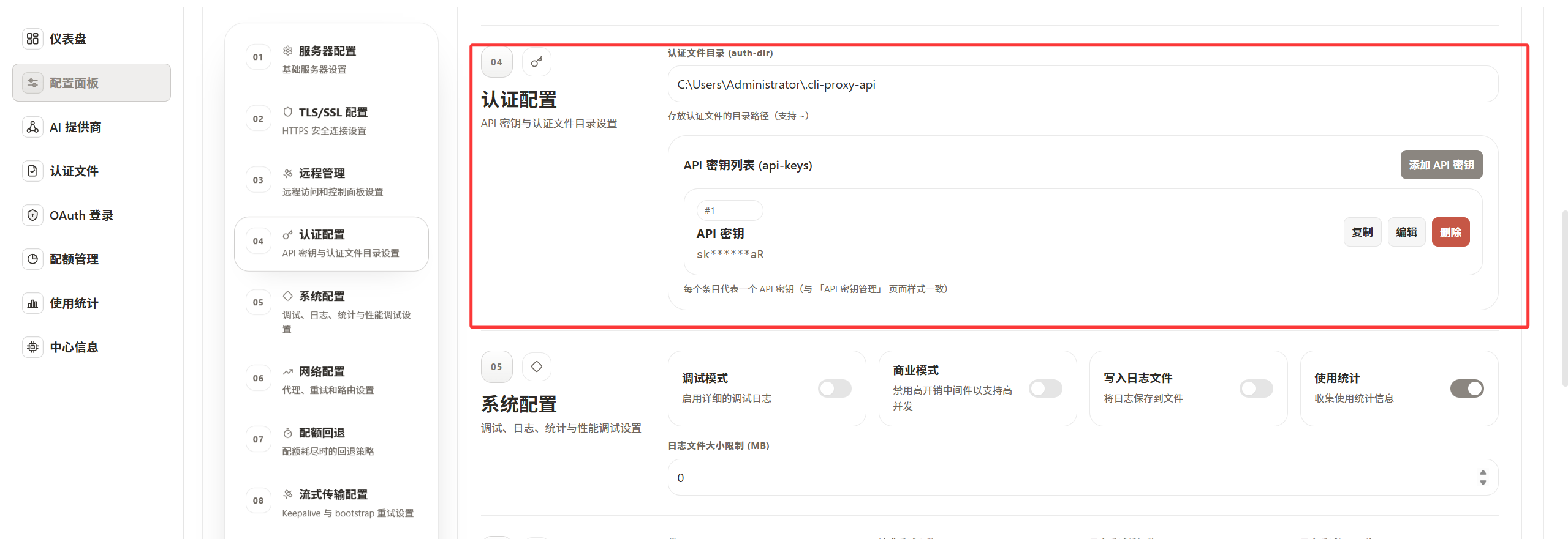 secret_key主要用于登录管理面板,不是你给 Codex 或 Claude Code 使用的 API Key。