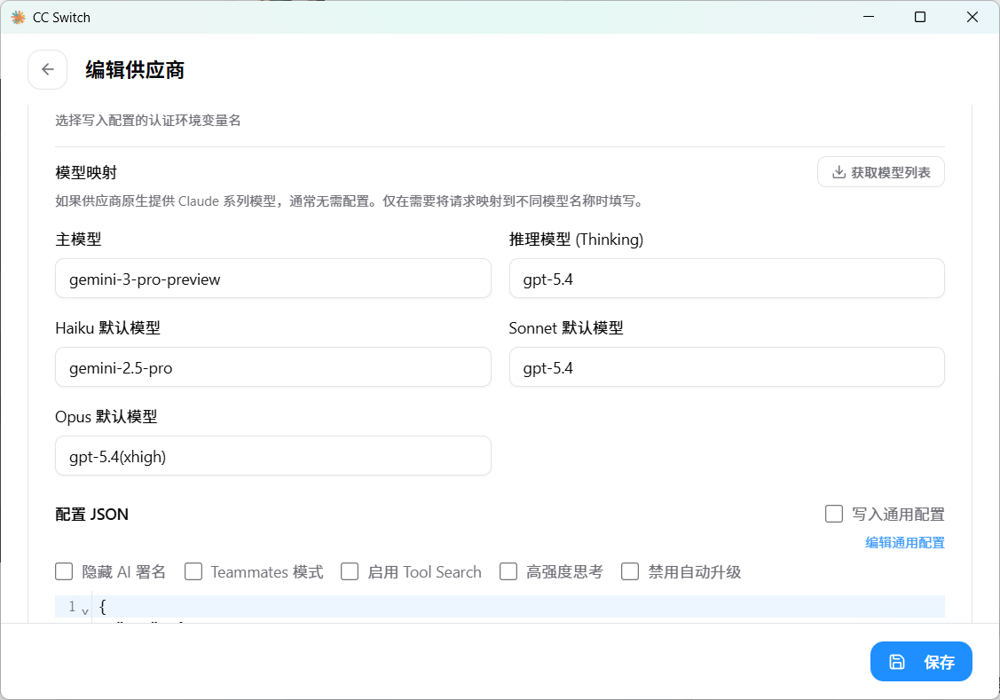 在 cc-switch 中为 Claude Code 添加配置时: